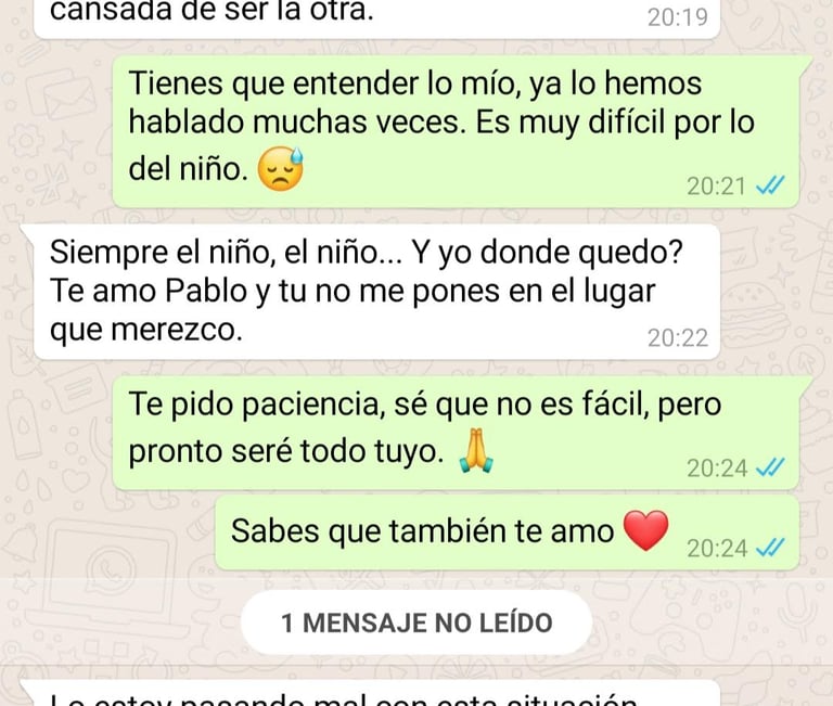 Eso fue lo que más le sorprendió de sí misma. Siempre había imaginado que, si algún día descubría una traición, rompería algo: un plato, una puerta, una fotografía. Pero no. Se quedó quieta, con el celular en la mano, leyendo una frase que parecía pequeña y, sin embargo, le partía la vida en dos: